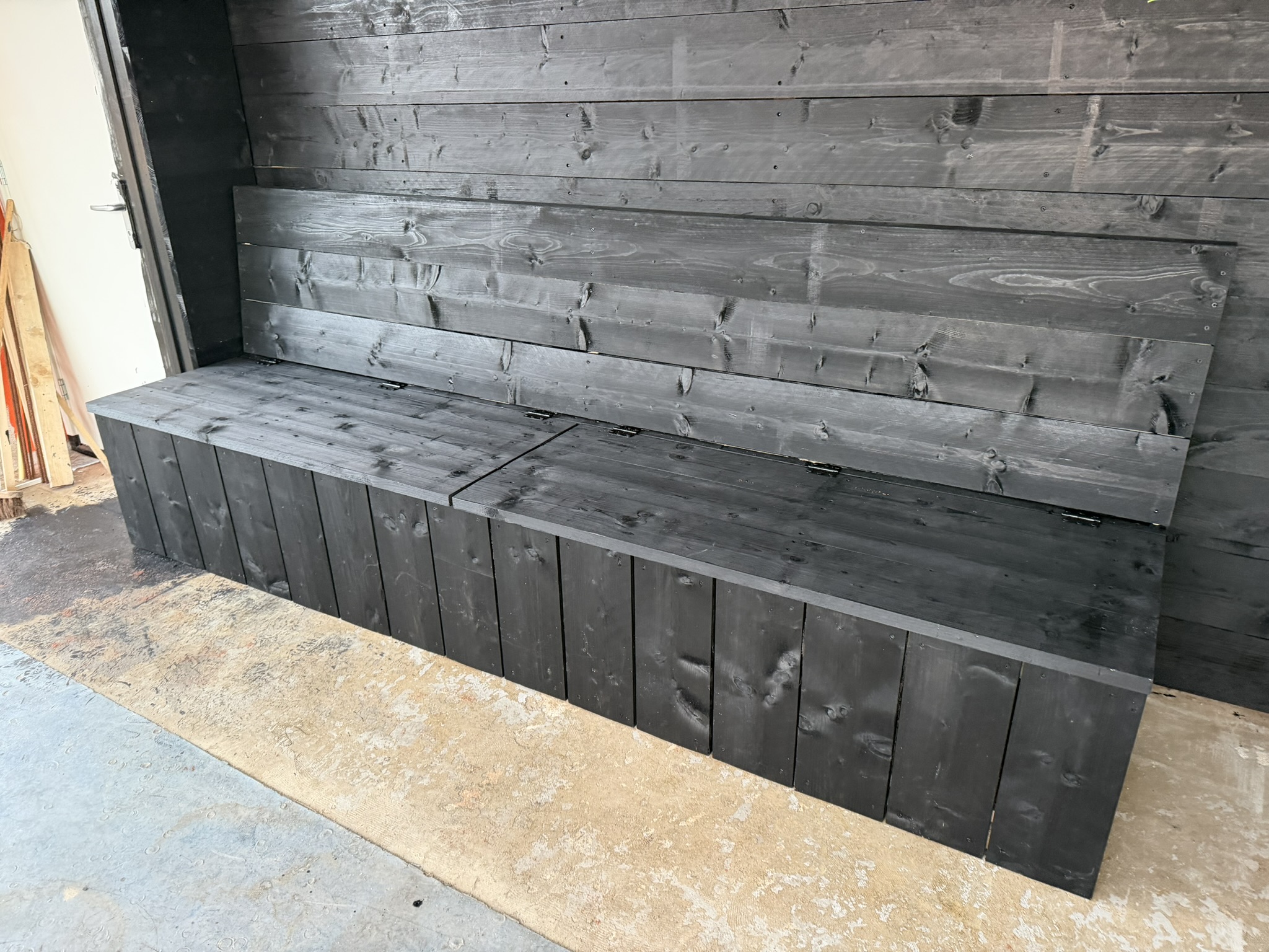 Sinds afgelopen week staat in de Daily een mooie nieuwe bank, gemaakt door Johan & Aart, bedankt mannen!! De muur en de bank (en een stukje vloer) zijn meteen in de verf gezet. Helemaal super! De bank zit zo in elkaar dat we er ook nog dingen in op kunnen bergen, zoals de tafeltennis batjes of de ehbo doos bijvoorbeeld.