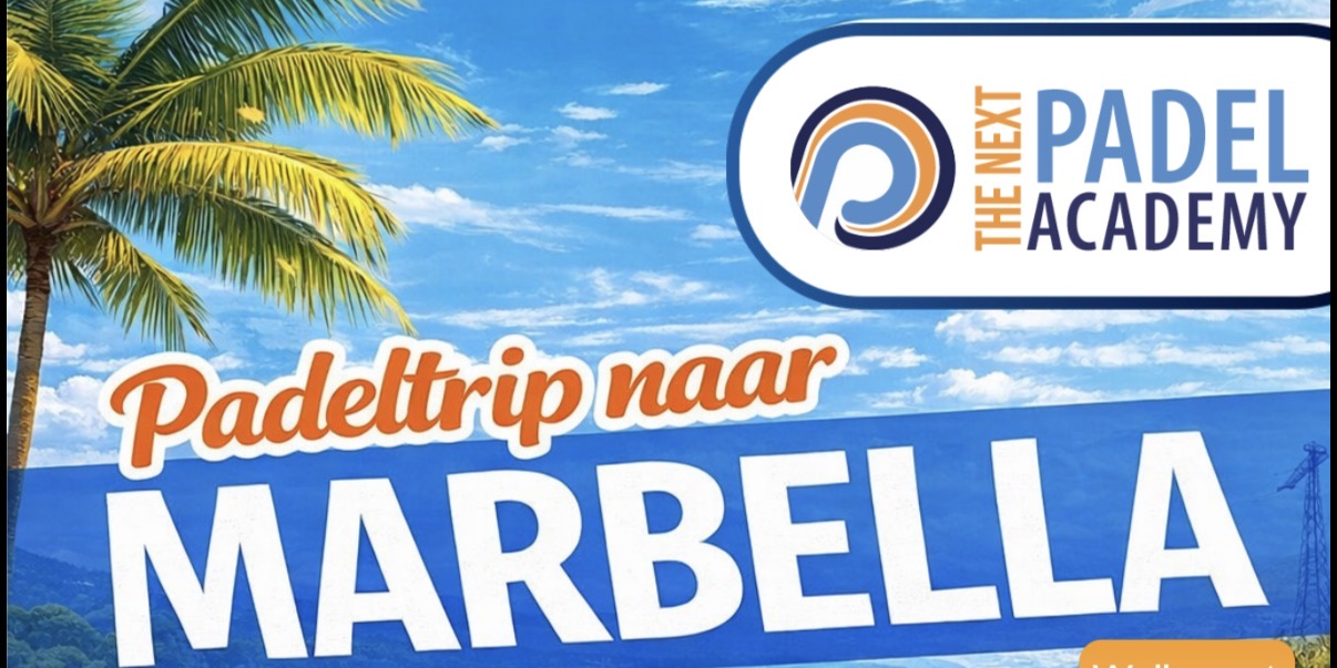 Lijkt het je leuk om een keer padeltraining te krijgen van een Spaanse trainer en aan de Spaanse kust mee te met een lokaal toernooi? Onze padelschool The Next Padeladacademy organiseert van 29 oktober 2026 tot en met 2 november 2026 een padelreis richting MARBELLA. Vincent en Mark zullen op locatie aanwezig zijn om de reis te begeleiden.