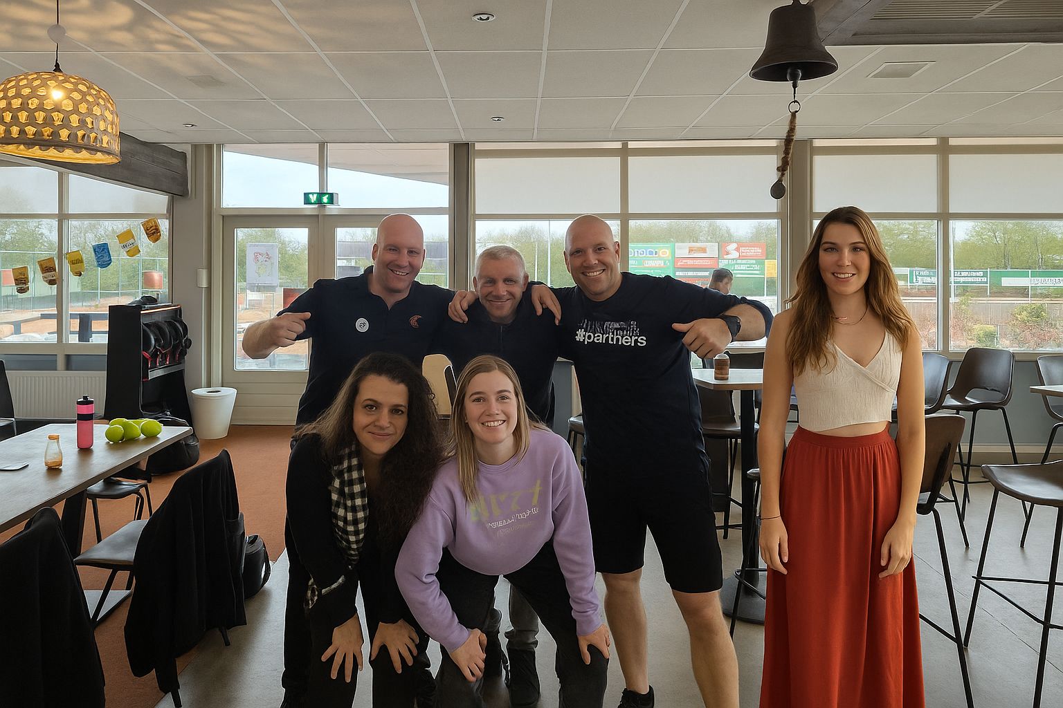 Anne-Marieke, Britt, Veerle, Thijs, Egbert en Christiaan van harte gefeliciteerd! Ook grote dank aan de mensen die bij ons hebben ingevallen en uiteraard aan onze shirtsponsor Mulderij & Partners (ook die is door AI aangepast). Op naar het volgende seizoen!